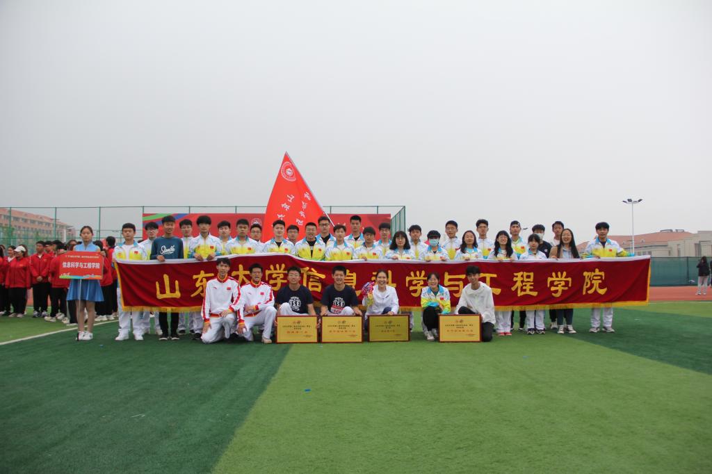 在我院师生的共同努力下,经过两天的拼搏,信息学院代表队在多个项目中摘金夺银,取得了教职工组团体第一、本科生组团体第一、本科生组男子团体第一名、本科生组女子团体第三名的好成绩。教工组方面,范雪楠老师获得甲组女子800米第一名,季伟老师获得乙组铅球第一名,李明老师获得乙组跳远第二名等;学生组方面,郑学铭同学获得本科生组男子400米第一名,苏运芝同学获得本科生组女子100米第一名,兰道晨同学获得本科生组男子110米栏第一名等;集体方面,教工组获得教工广播体操比赛第二名、教工跳大绳第二名、教工组4×100米混合接力第一名,本科生组获得男子4*100米接力第一名,4*100米混合接力第二名等。
